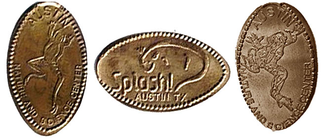 Free admission. The machine was located in the "Splash!" exhibit room between the dressing areas. Designs are: 1) Splash logo w/ salamander, 2) Frog w/ Austin Nature & Science Center, 3) Dinosaur w/ Nature & Science Center, 4) Generic 'I Love You' design. |