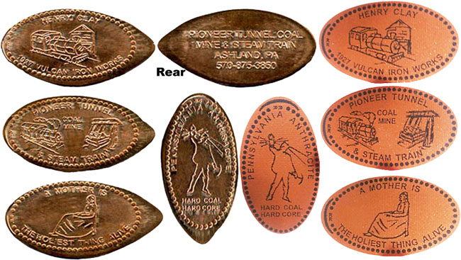 19 th & Oak Sts Ashland, PA , 17921 Phone: 570-875-3850 Website This is the closest squished penny machine to the much-fabled town of Centralia, where an underground mine fire has been burning since 1962. The machine close is to the desk that sells tickets for the Coal Mine and Steam Train tours.