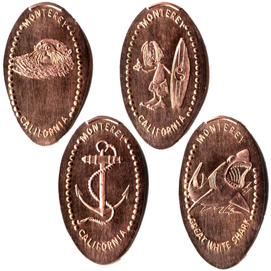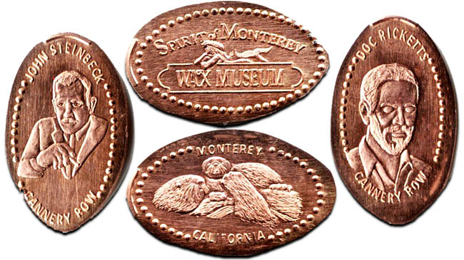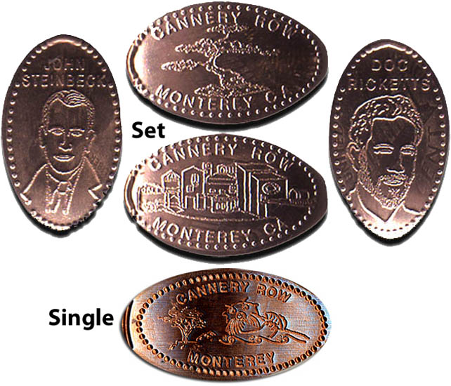 Moved 3 Designs 2012, Machine moved to Candyland upstairs!! 1) John Steinbeck, 2) Doc Ricketts, 3) Spirit of Monterey logo, 4) Sea Otter floating on bach with baby on chest