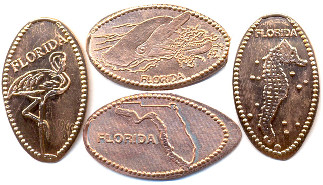 Designs were flamingo, seahorse, dolphin head and state outline, all said FLORIDA on them.