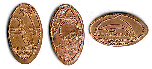 2) Alligator head with mouth open facing right and 'Gulfarium' inside,