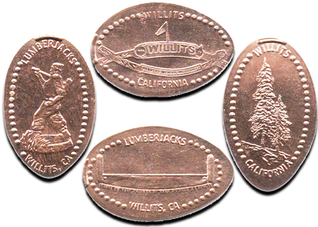 2) Says Willits, California with a Redwood Tree on it;