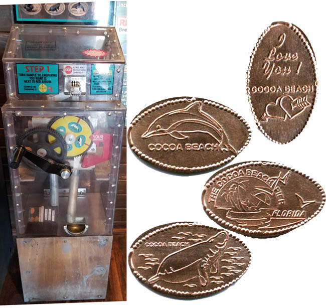 The machine is located inside the gift shop to the right of the pier before you go up. It is in the back on the left. Costs $.51 cents each. Bring quarters & pennies: