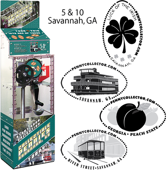 Moved 1: 1) "Luck of the Irish, Clover, 2) 'Savannah, GA', tour boat, 3) 'Georgia Peach State', 4) 'River Street, Savannah, GA.