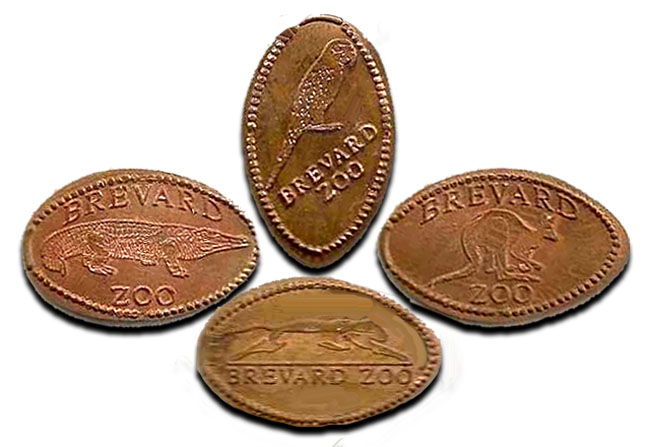 Retired 2: 1) Brevard Zoo logo with running big cat (smaller text than Retired 1 design) 2) Parrot, 3) Kangaroo, 4) Alligator.