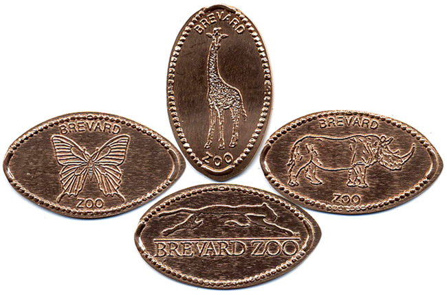 Retired 1: 1) Brevard Zoo logo with running big cat, 2) Rhino, 3) Butterfly, 4) Giraffe.