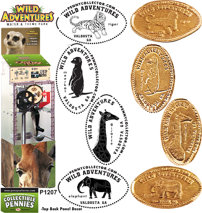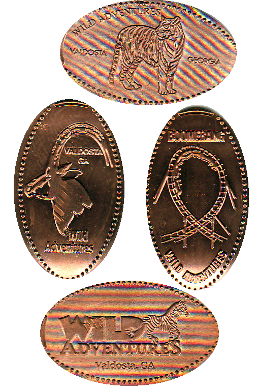 Retired #2: 1) Roller Coaster (v), 2) Wild Adventures Logo with Zebra (h), 3) Tiger (h), 4) Ram (v)