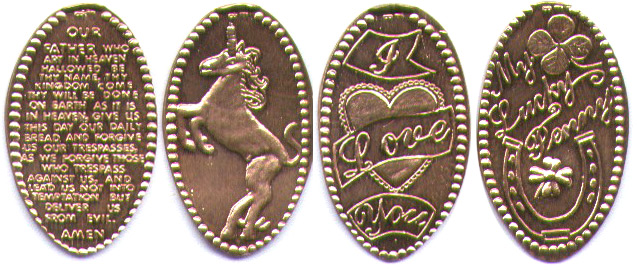 Retired Generic Designs were: 1) Lord's Prayer 2) 'I Love You' 3) 'My Lucky Penny' 4) Unicorn.