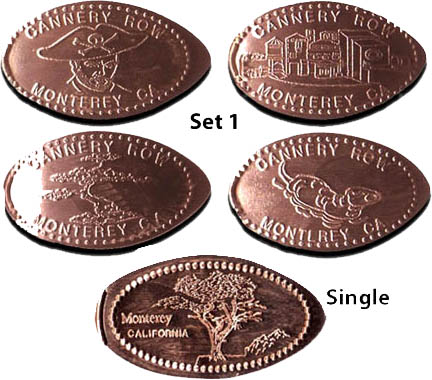 Moved #6 (to 5 and dime/ was From Candyland 2): 1) Sea Otter top in heart, 2) Pirate with a sword, 3) 'Greetings from Cannery Row', 4) Lone Cypress tree