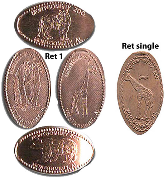 Retired 1 designs: (All have "Montgomery Zoo .Montgomery, AL" on them). Ape, Tiger, Bear, Giraffe.