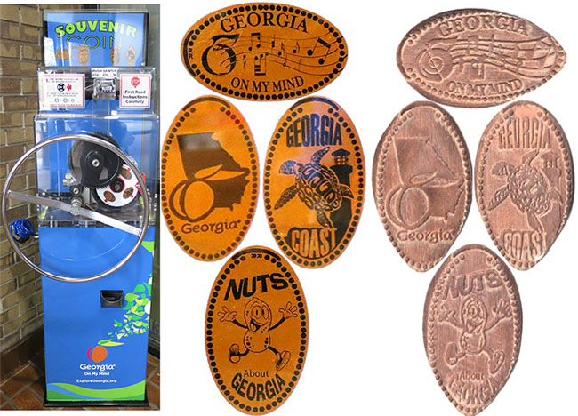 The penny machine is located in the welcome center. The restrooms are open 24 hours but the area where the machine is located may only be open 8:30 am to 5:30 pm. Plenty of free parking.