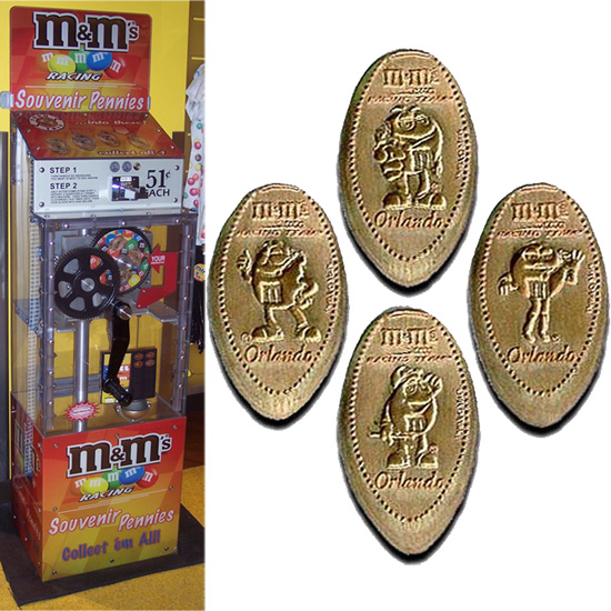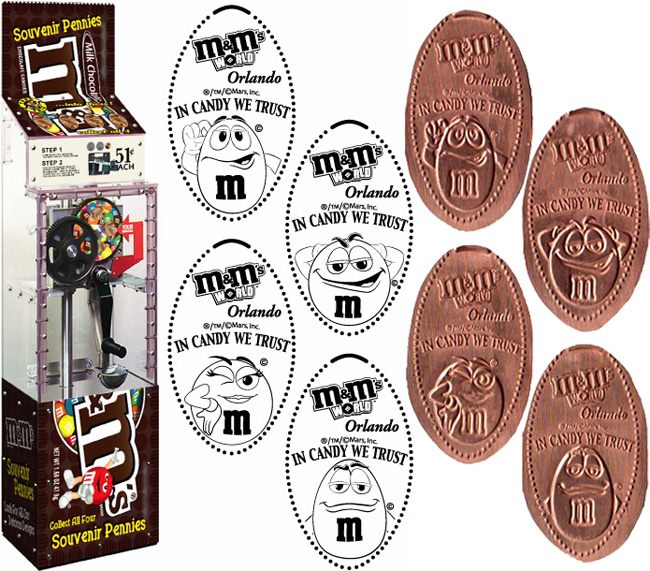 Machine 2 is in the front to the right of the counter. All designs says M&M's World Orlando.
