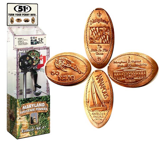 Designs were: 1) Annapolis with Sail Boat "America's Sailing Capital", 2) Maryland 7th state in the union, 3) Go Navy! 4) Maryland State Capital building.