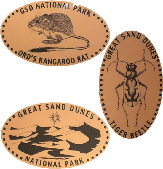 There are 3 designs, The missing design is Zapata Falls. Pennies are mounted on a small card with a picture of the Dunes and on the back there is a description of them. |