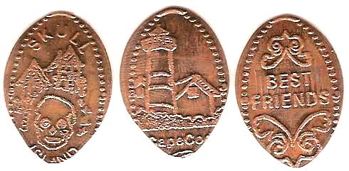 Retired 1: 1) 'Skull Island', skull in front of buildings, 2) 'Cape Cod', Lighthouse, 3) 'Best Friends'