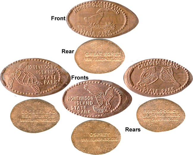 4) Lightning Whelk and Fighting Conch (both shells on one penny).