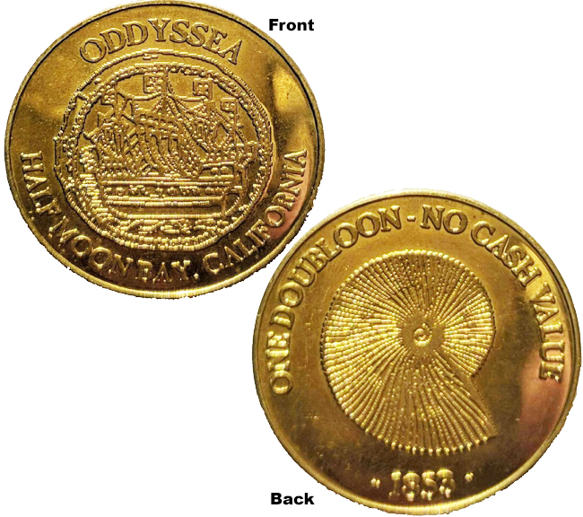 The machine is a 4 design hand crank with a Ships Wheel to spin to get the designs. All have shop 'Oddyssea' on the back. Designs are:
