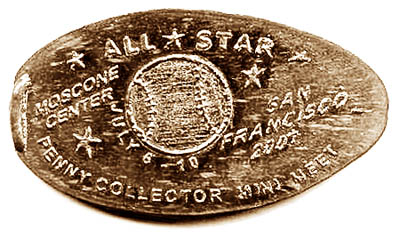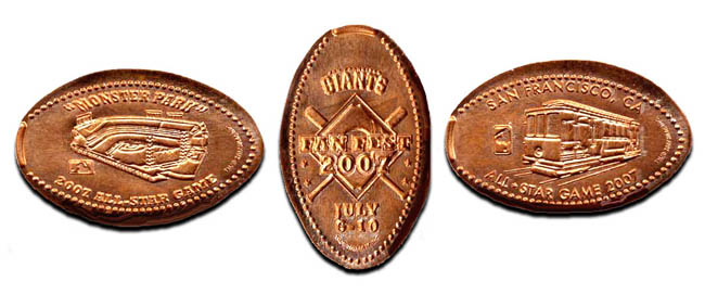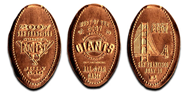 The Major League Baseball All Star Game Fan Fest was hosted here by the San Francisco Giants on Mach 1, 2007. Pennycollector was here with 2 three position attended machines and a single nickel design for the event Plus two Hall of Fame designs The event lasted 3 days.