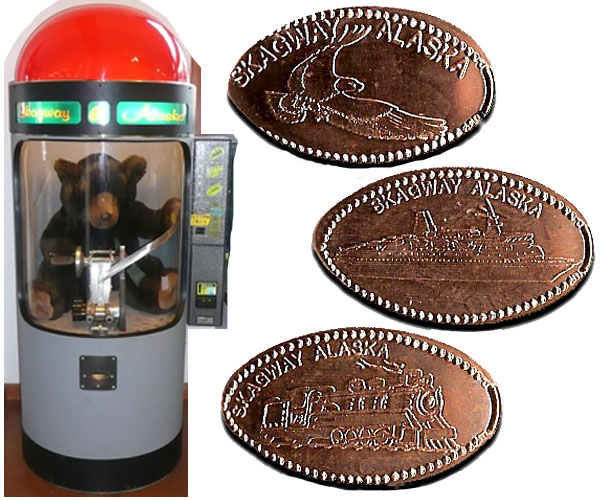7th & Broadway Skagway, AK Website Token machine 1 is outside in front of the store, 2 designs. It costs $3 for one Token and $5 for two. Designs are: