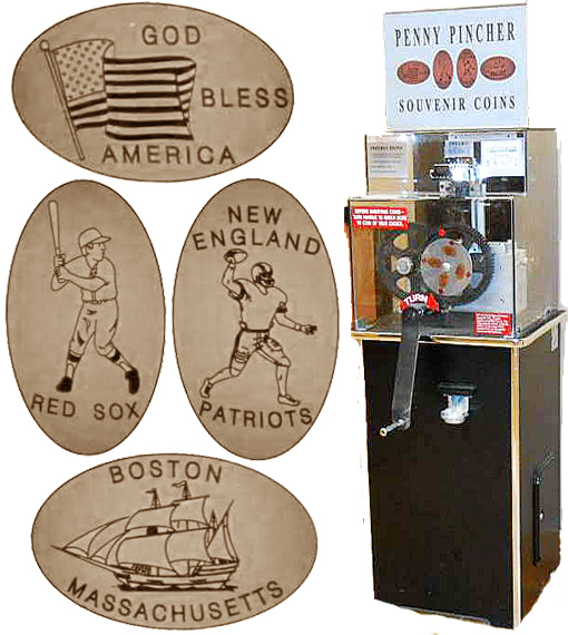 The machine is located outside restrooms. Costs $1 per roll. Designs are: