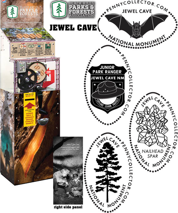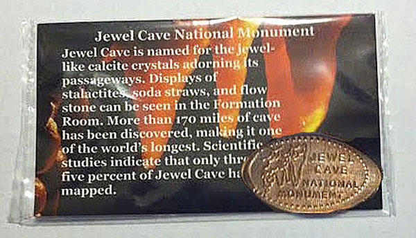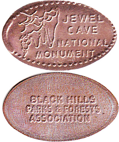 Prepressed penny is available in the gift shop. (An attended machine at Wind Cave National Monument that has no public access presses this design). Cost to purchase: 99¢ each design. Design has a beaded border: