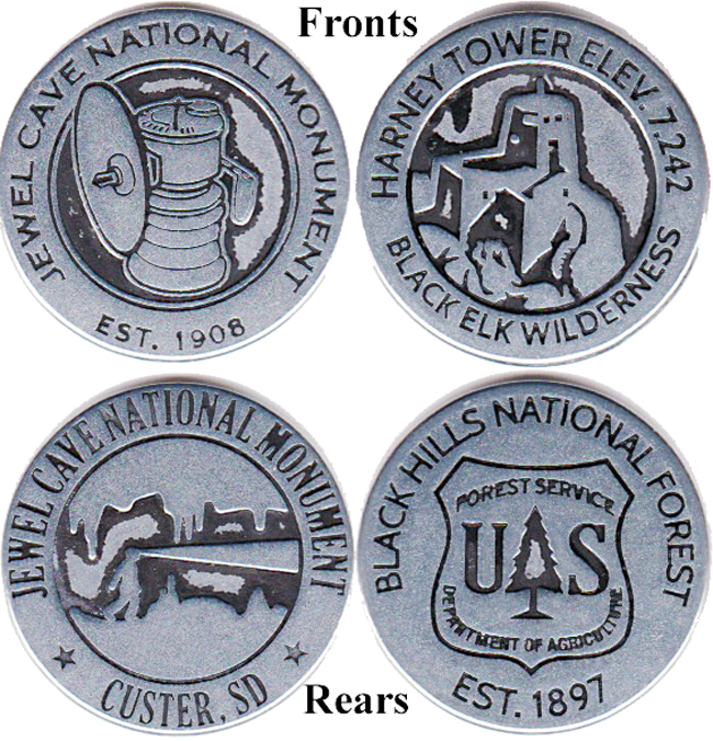 2) Front: Harney Peak with 'Harney Tower Elev. 7,242 Black Elk Wilderness'/ Rear- U.S. Forest Service emblem with 'Black Hills National Forest Est. 1897'.