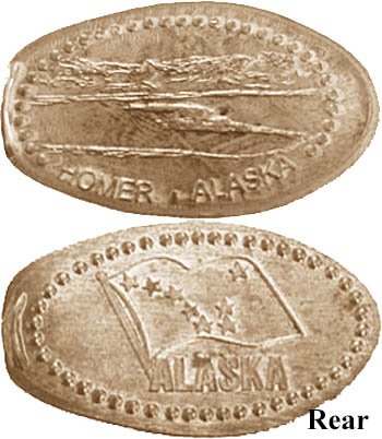 1) 'Homer Alaska', image of area/ Rear- Alaska', Alaska State flag.