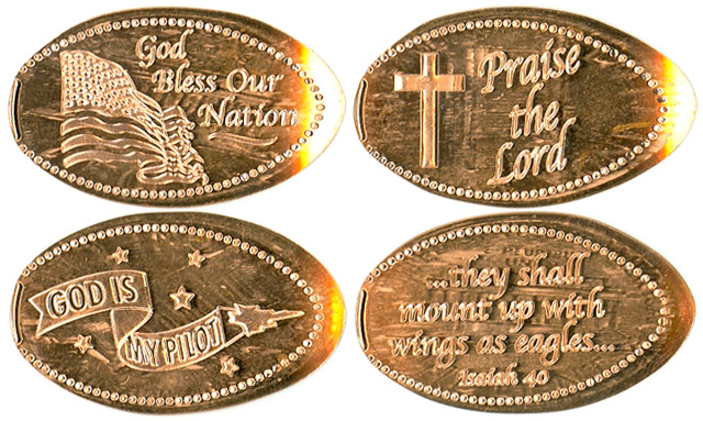 Retired 2: 1) A cross and says "Praise the Lord", 2) An American Flag that says "God Bless Our Nation", 3) A plane carrying a banner that says "God is My Pilot", and 4) Words - "...They Shall Mount Up with Wings as Eagles, Isaiah 40" |