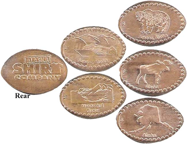 Reverse side of coins all have the 'Alaska Shirt Company' logo.