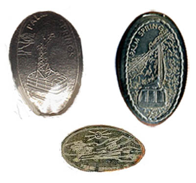 Retired Dime: 1) 'Palm Springs, CA', Image of area with sun over,
