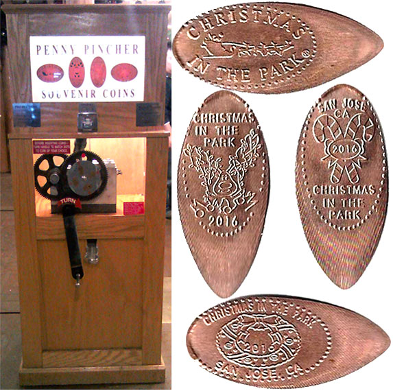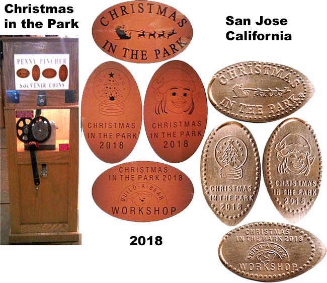 Retired 2016 designs were: 1) Christmas in the Park', Sleigh being pulled by Reindeers (Event Logo) 2) 'Christmas in the Park San Jose, CA 2016', 2 Candy Canes, 3) 'Christmas in the Park 2016', Rudolph with lights around his antlers, 4) 'Christmas in the Park, San Jose, CA 2016', - Christmas Wreath.