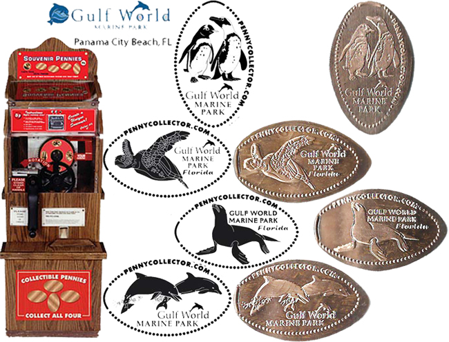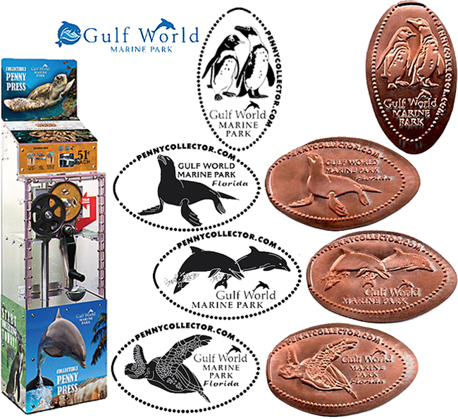 All have 'Gulf World Marine Park' (Two with 'Florida' also). Designs are: