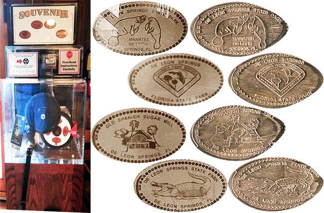 The machine is located inside the Old Spanish Sugar Mill Restaurant and cost is 76c each. Admission to the state park is required to get to the restaurant. The restaurant is unique, you cook your own pancakes on a griddle in the middle of the table.