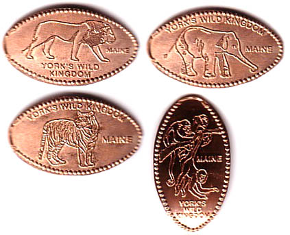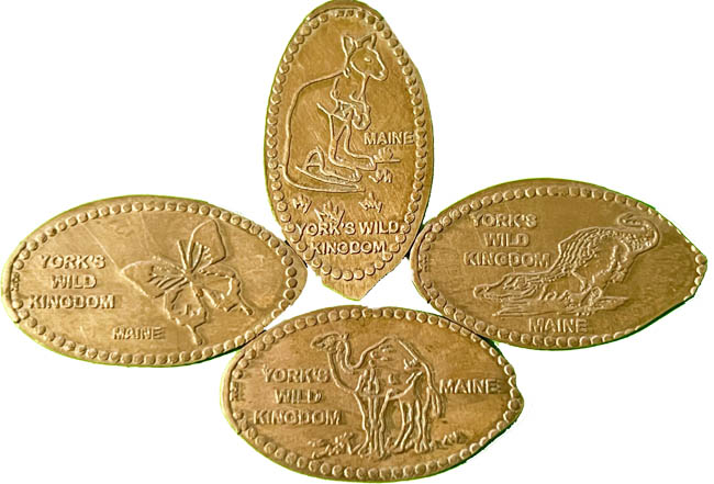 Machine 1: All have 'York's Wild Kingdom, Maine' on them. Designs are: