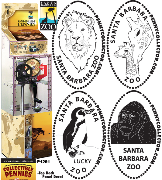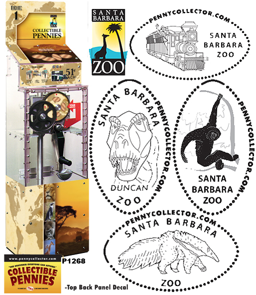 500 Ninos Drive Santa Barbara, CA , 93103 Phone: 805-962-5339 Website There are 12 pennies in total. 3 Pennyman 4 design hand crank, pre-loaded accepting bills and plastic.