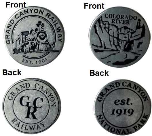 1) 'Grand Canyon Railway EST 1901'/ Rear- Grand Canyon Railway GCR', logo,