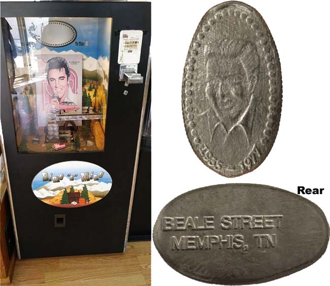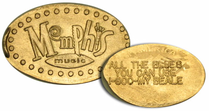 1) (V) Elvis's head, "1935-1977" (obverse); "Beale Street Memphis TN" (reverse). Inside the store.