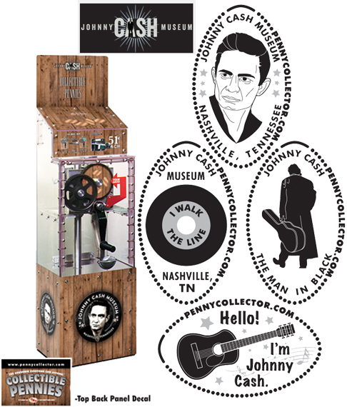 The Johnny Cash Museum. $1 each (bills or credit card) on zinc pennies. Designs are:
