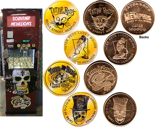Tokens are 2" in diameter and cost $3 each or 2 for $5. Designs are: