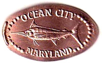 Design is: Marlin facing left with dot border. City in top dots and State in bottom dots. Really nice design.. |