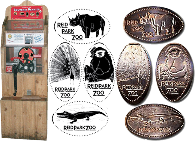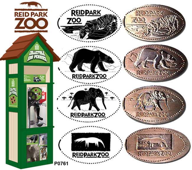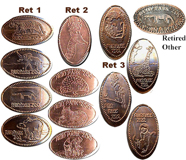 Retired 1 - 1) Zoo Logo (anteater), 2) Tiger pacing, 3) Elephant facing diagonal, running, 4) Polar Bear on all fours head up.