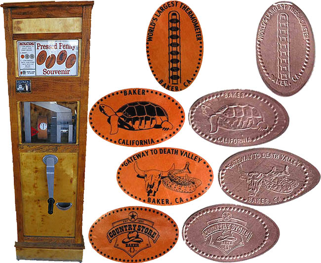 Alien Fresh Jerky, which is on the opposite side of the street 1,000 feet to the north, also has a penny machine. Next door to them in the same parking lot is the Shell Gas/Jack in the Box. The 134 Gift Shop just 2 shops away on the same side of the street, has a penny machine also. (Baker's a small town)
