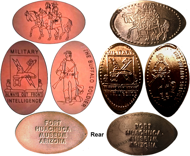 New machine with 3 penny mules with "Fort Huachuca Museum Arizona" on the opposite side. Designs are: