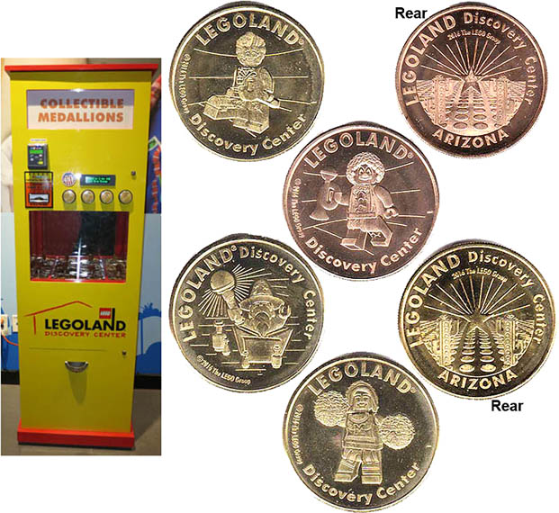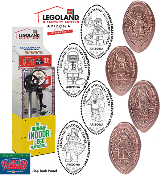 5000 S. AZ Mills Center #135 Tempe, AZ , 85282 Phone: 8775263860 Website The Machine is by the exit of the exhibit but if you ask nicely, the staff will escort you over to it and let you press without having to pay the entrance fee. The designs are a knight, a football (American) player, a lady with a microphone (reporter/singer) and a stunt guy/Race Car Driver.