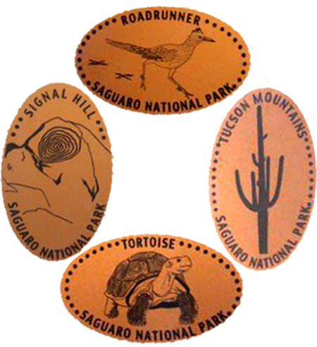 Retired 1: 1) Rincon Mountains / Saguaro National Park (Desert scene with Saguaro), 2) Javelina / Saguaro National Park (Two javelinas), 3) Gila Monster / Saguaro National Park (Gila Monster), 4) Coati / Saguaro National Park (Coati)