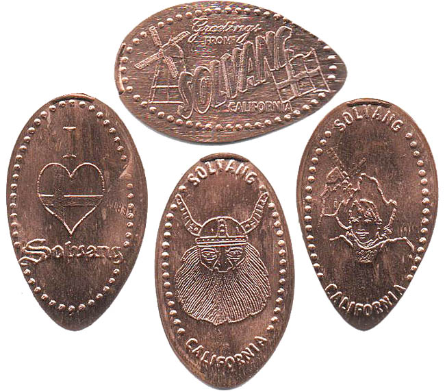 1) 'Greetings from Solvang California' with a picture of a windmill & Danish flag.
