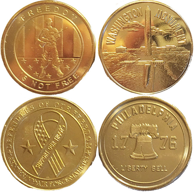 3) ''Defenders of Our Freedom, Army, Air Force, Marines', ribbon in middle,