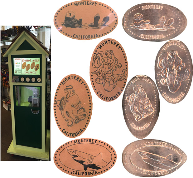 4) Otter floating on its back with dotted border and the words "Monterey" and "California" |
