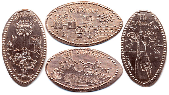 Each design included a very detailed cartoon and the words "Port Discovery" and "Baltimore". Three of the designs also include a small sign which reads "Road Trip". |