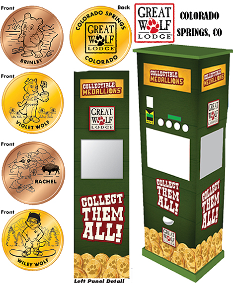 Token Machine 1: all have Lodge logo, City and state on back. Designs are :